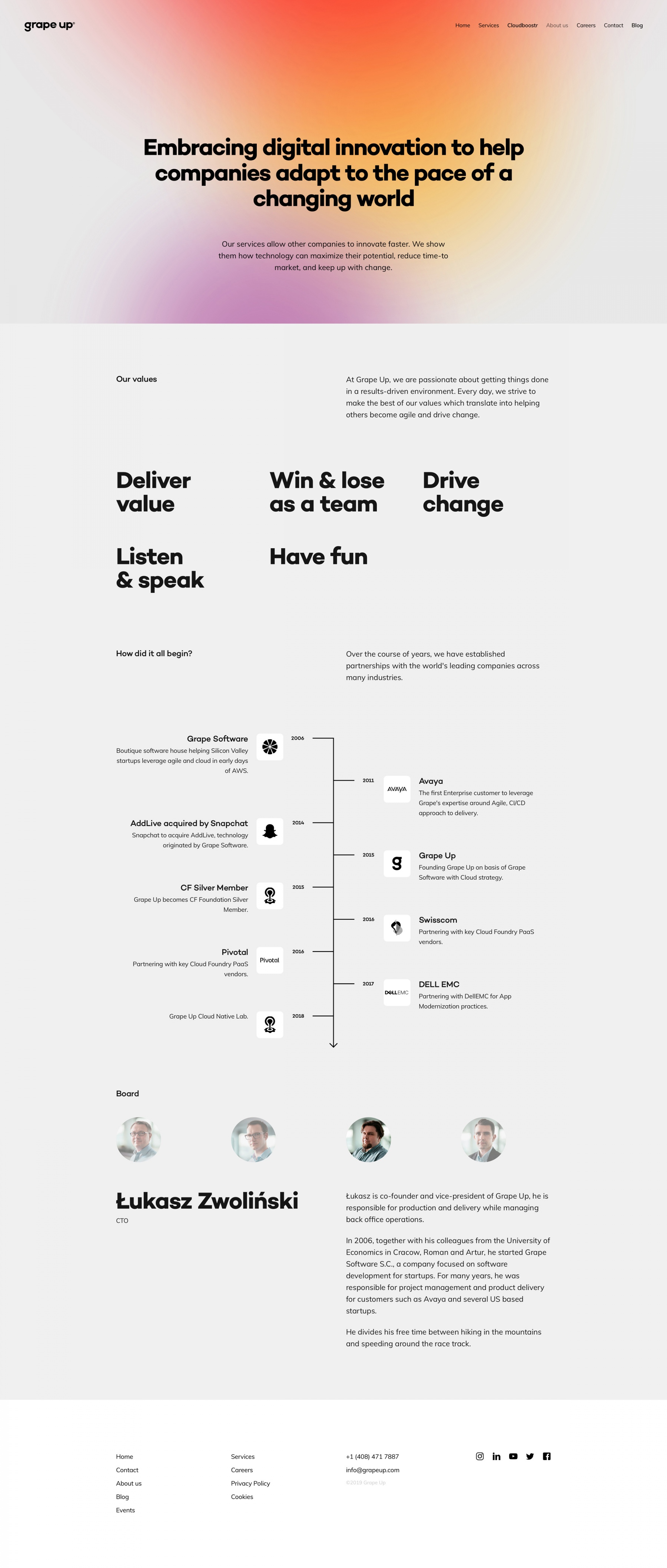 In an industry as dynamic and fast growing as IT, you have to always keep the pace and move as fast as others. In 2018 we took a commitment to redesign Grape Up's website along with visual identity.
