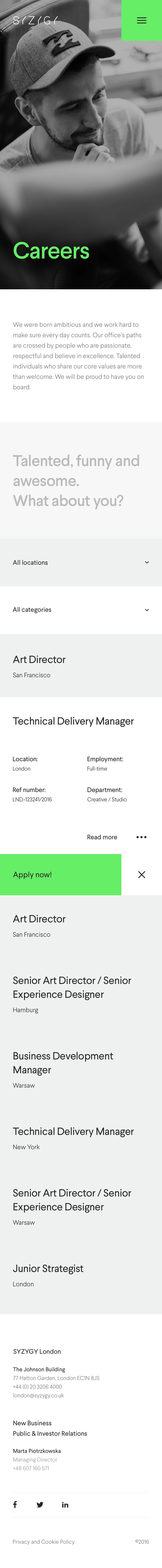 SYZYGY is a global network of digital agencies operating in multiple fields and markets. Back in 2016, during cooperation with SYZYGY's Polish office in Warsaw, new global website has been created, together with London headquarters and our Warsaw development team.